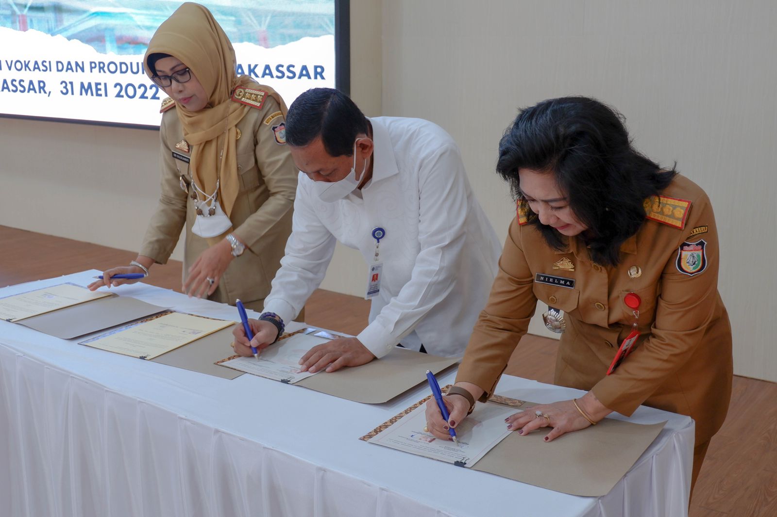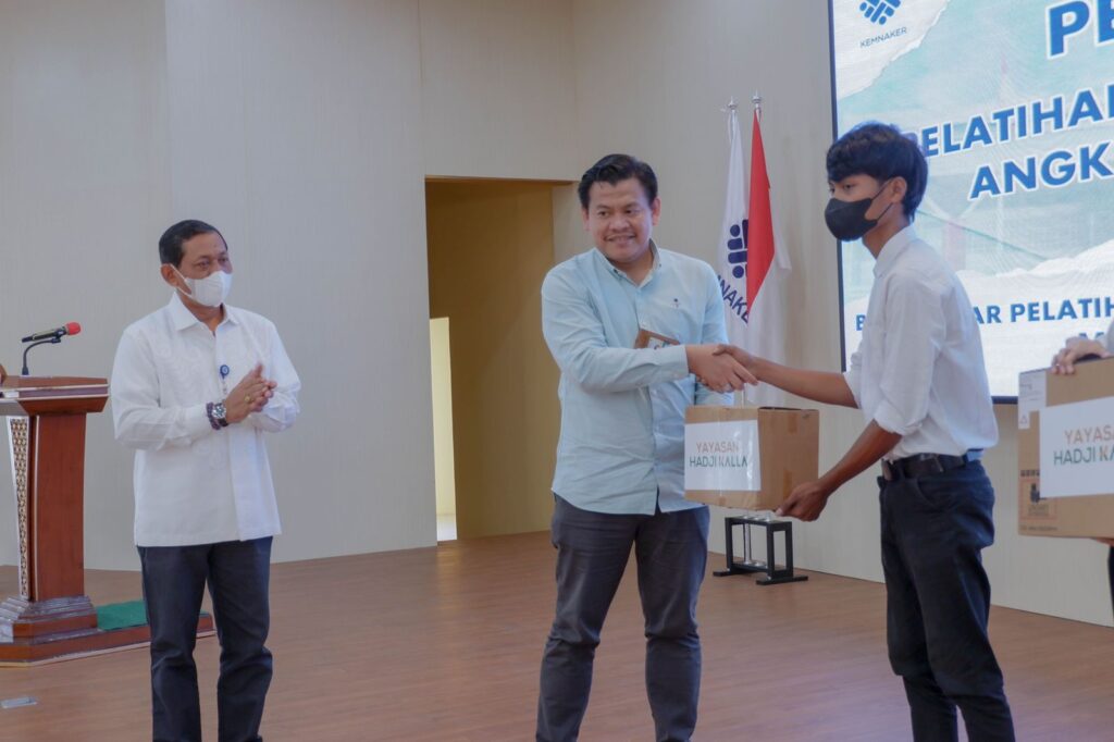 Dilanjutkan dengan penyerahan bantuan peralatan secara simbolis dari Yayasan Hadji Kalla bagi alumni Pelatihan Berbasis Kompetensi oleh Yayasan Hadji Kalla. Sekaligus penandatanganan MoU antara BLK Makassar dengan Dinas Ketenagakerjaan Kota Makassar dan Dinas Koperasi dan Usaha Kecil Menengah Kota Makassar.